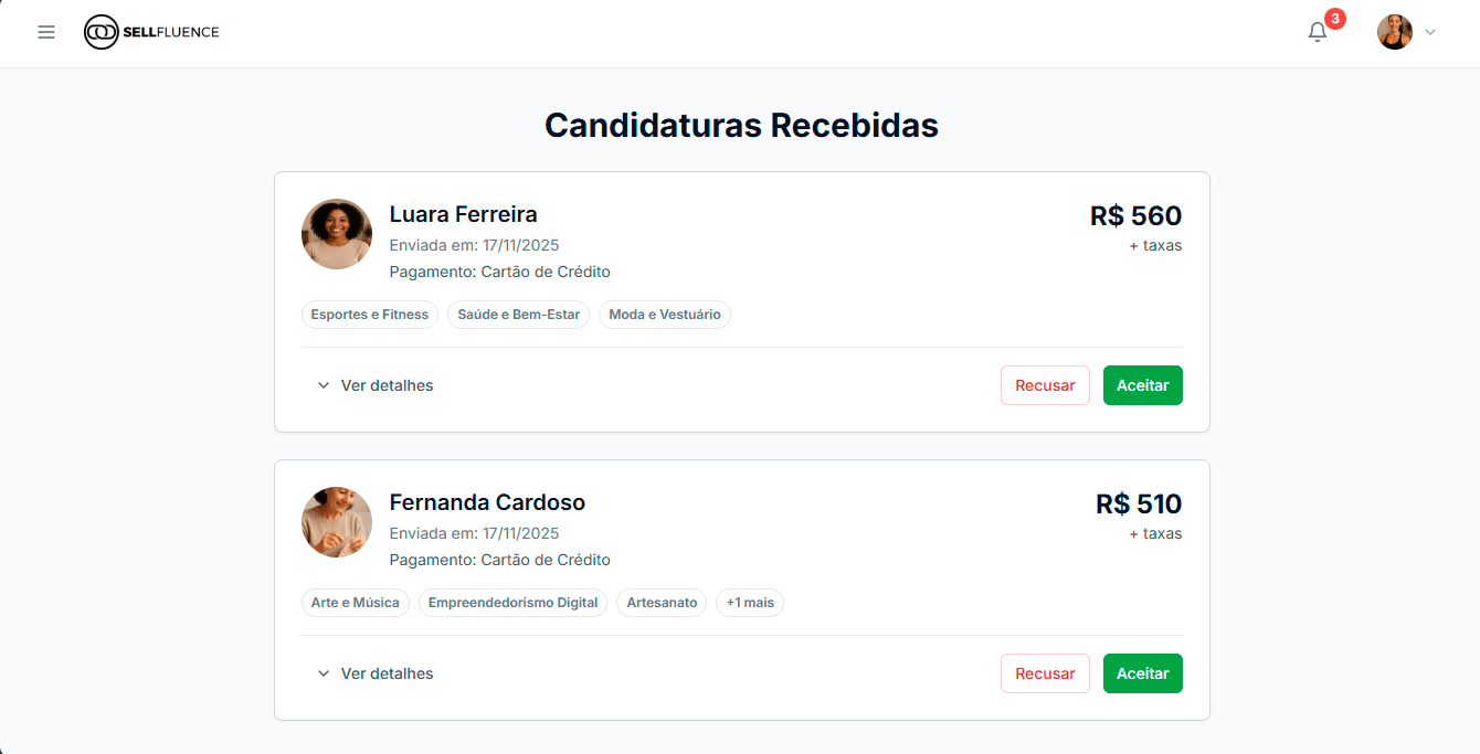 No Sellfluence, o pagamento só é liberado para o influenciador após sua aprovação e finalização do trabalho.